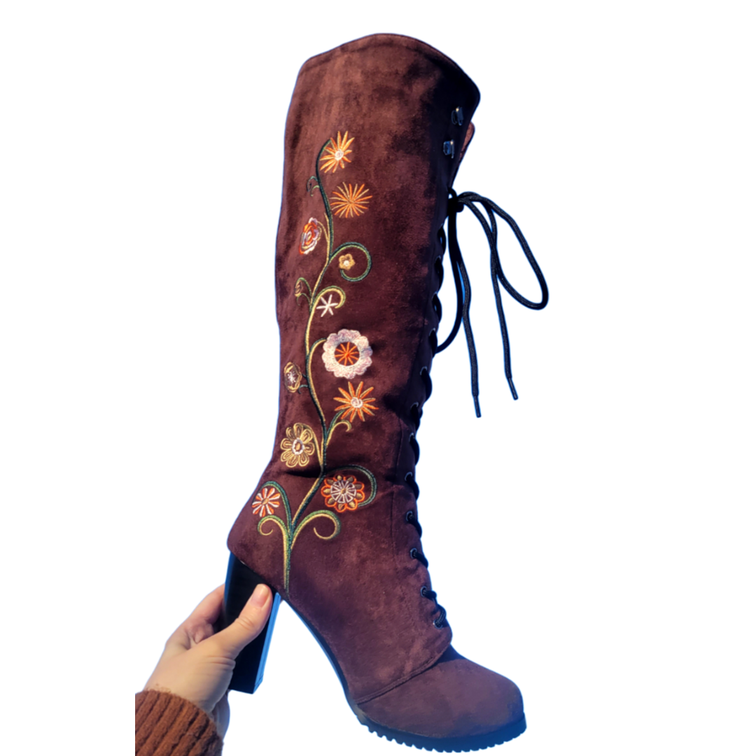 Step into the free-spirited charm of the 60's with our Daisy Dreamer Boots. Inspired by the iconic Jerry Edouard boots seen on Penny Lane in the cult classic Almost Famous. Embody the bohemian essence of that era and channel your inner vintage goddess with these floral-embroidered beauties.