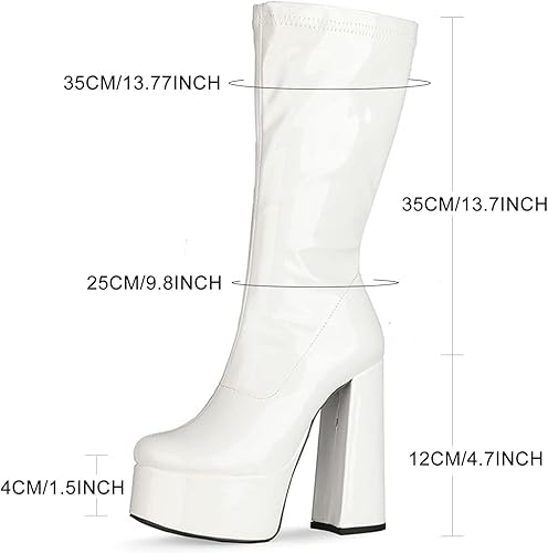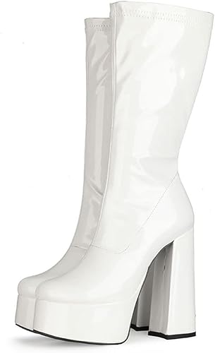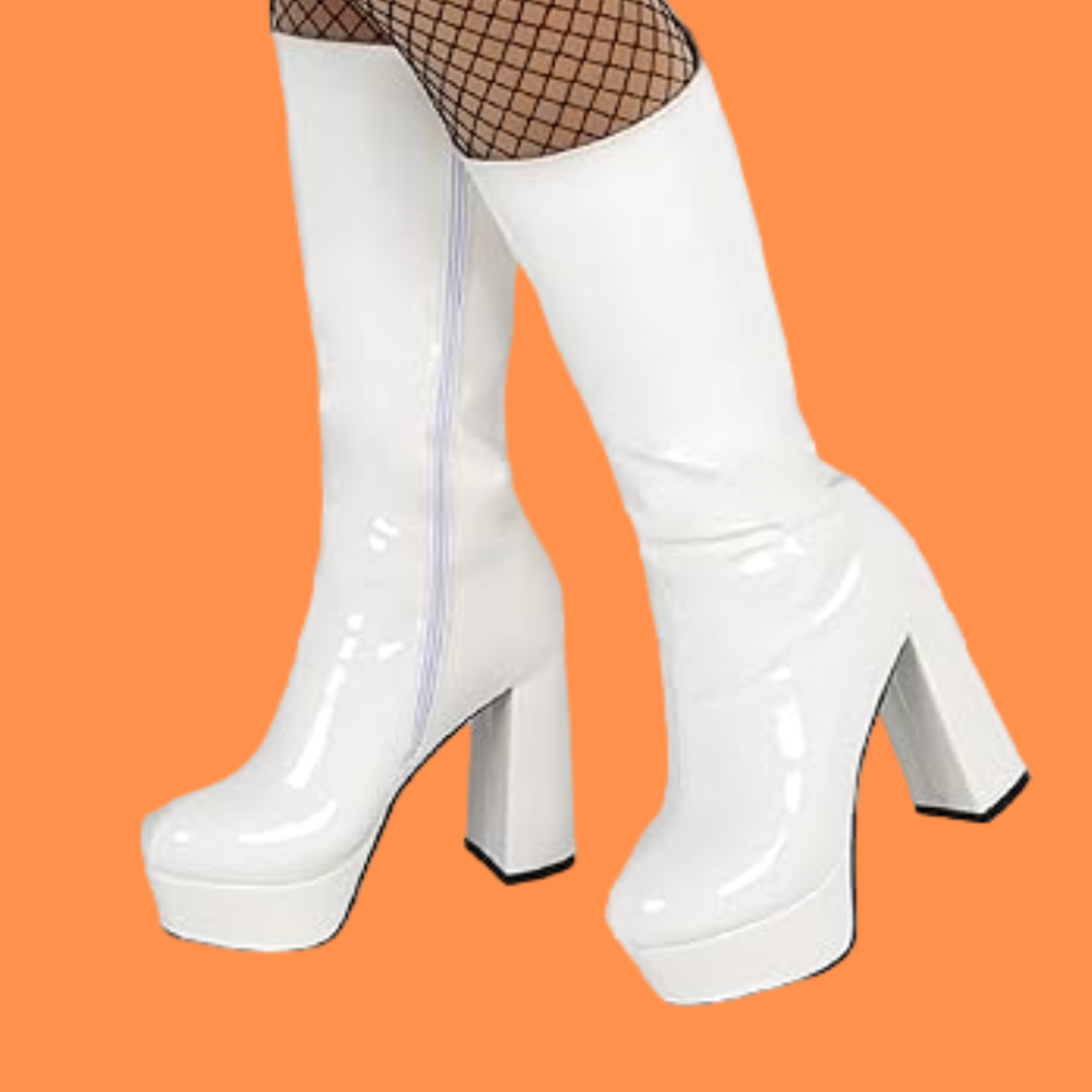 Step into a world of retro glam with these iconic white knee-high platform gogo boots. Their glossy patent finish and chunky heel give you that perfect blend of vintage flair and modern edge, making them versatile enough to elevate any outfit. Whether you’re channeling disco vibes or adding bold style to your everyday look, these boots will have you feeling unstoppable.