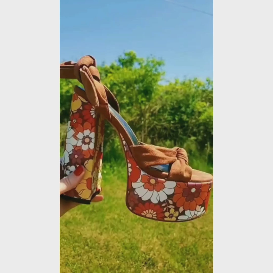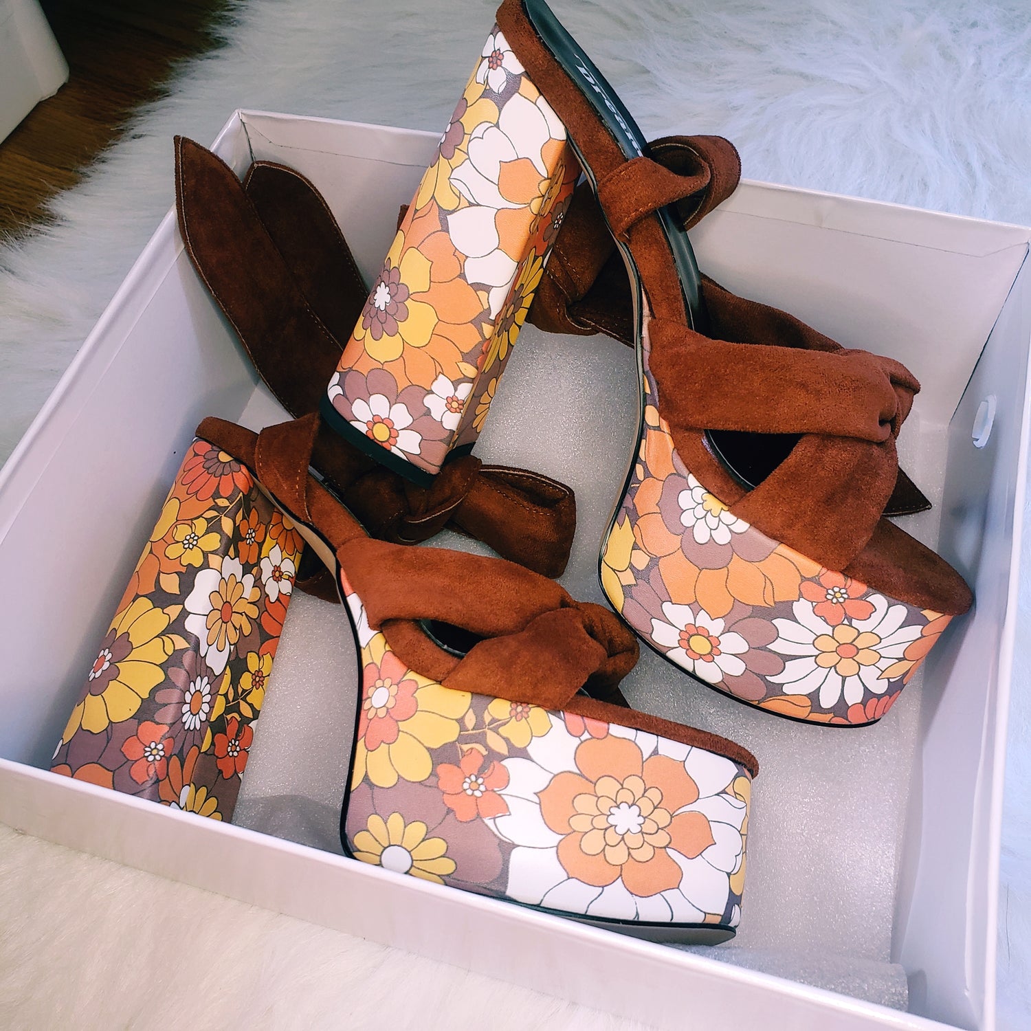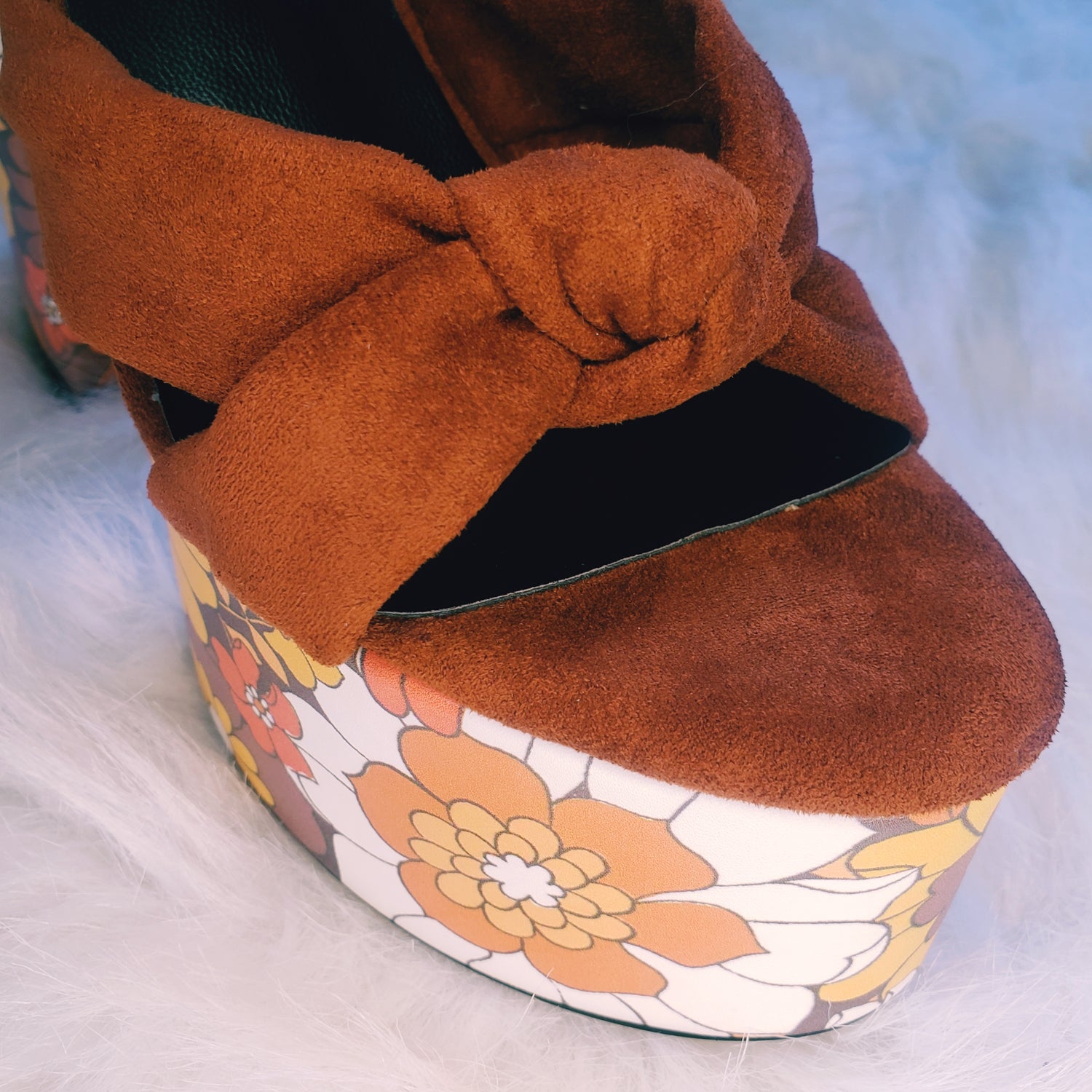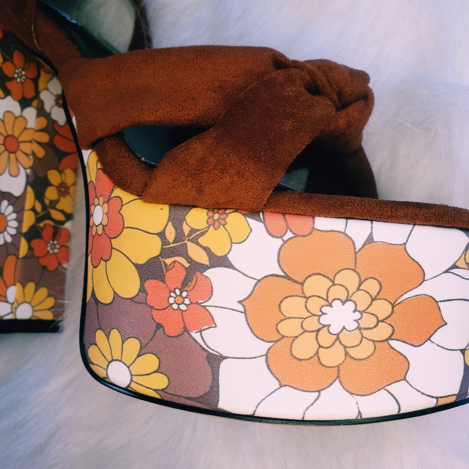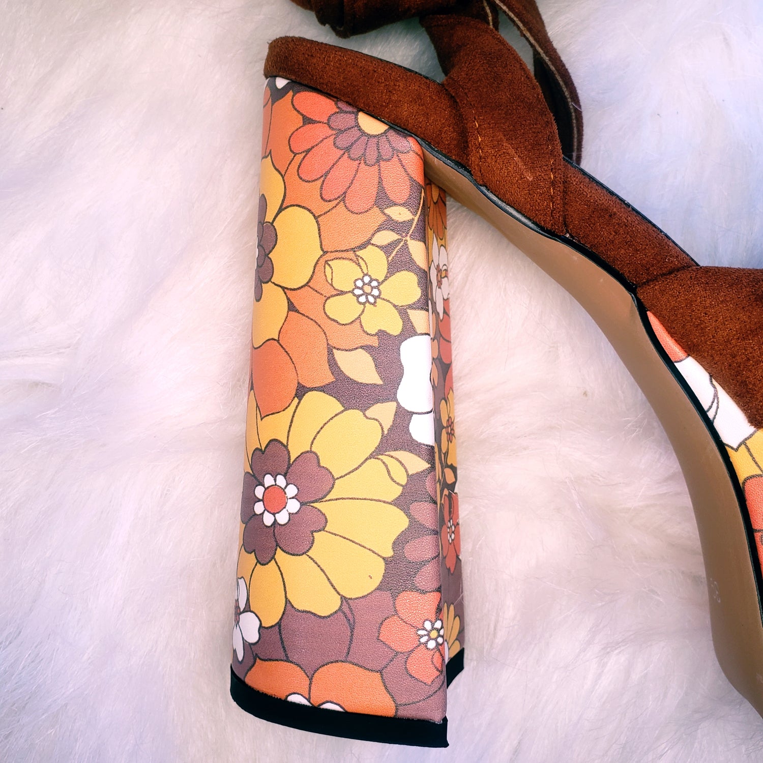 Step out in these suede platform high heels and channel your inner 70's queen. They feature a retro floral design that is perfect for spring, summer and fall fits.